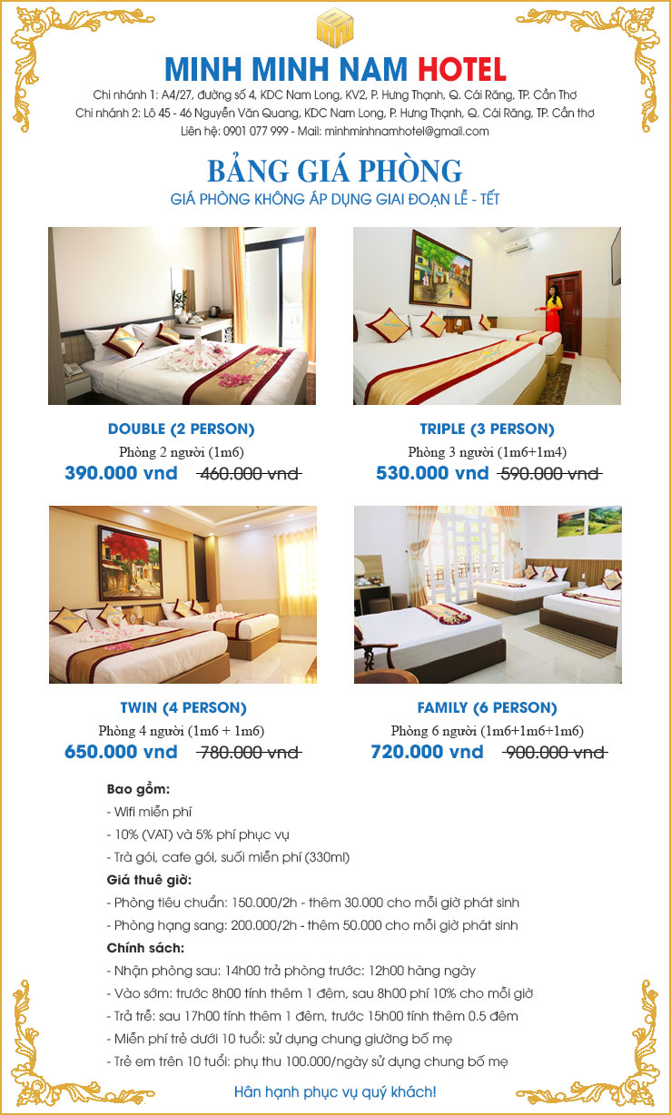 Khách sạn Minh Minh Nam - Hiện đại, tiện nghi giữa lòng Cần Thơ