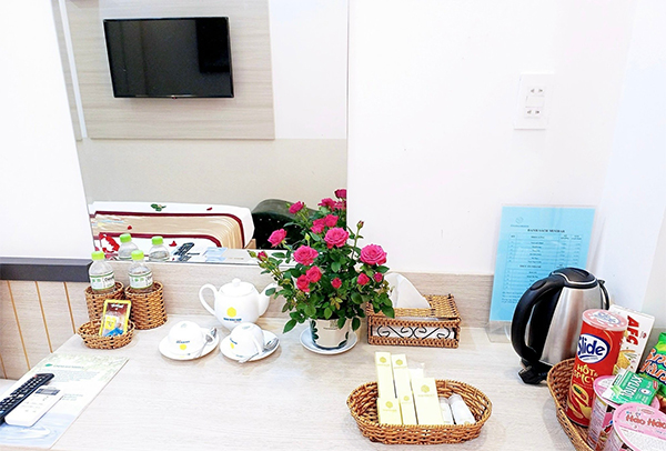 - Trà gói, cafe gói, nước suối miễn phí (330ml)