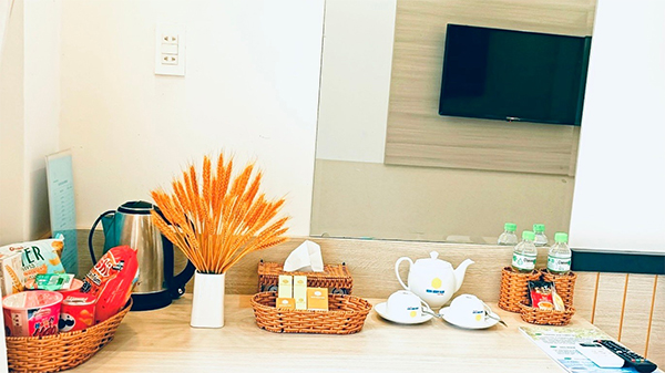 - Trà gói, cafe gói, nước suối miễn phí (330ml)